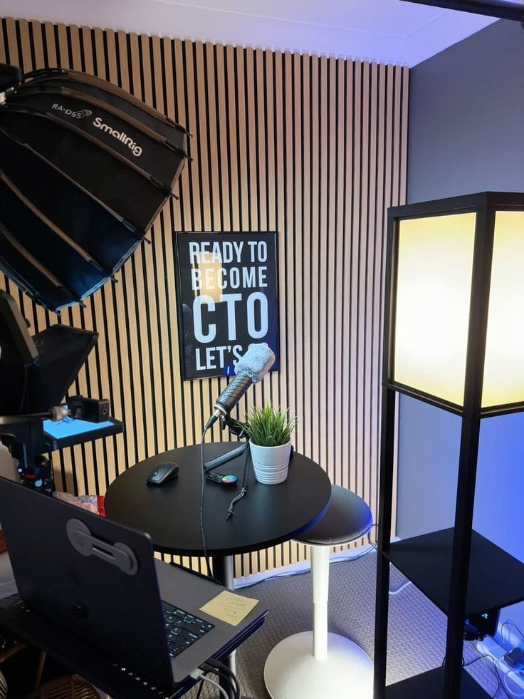 We design and build customized podcast spaces with professional lighting, acoustic panels, and a unique style that fits your personal brand. Perfect for recording with confidence and clarity.